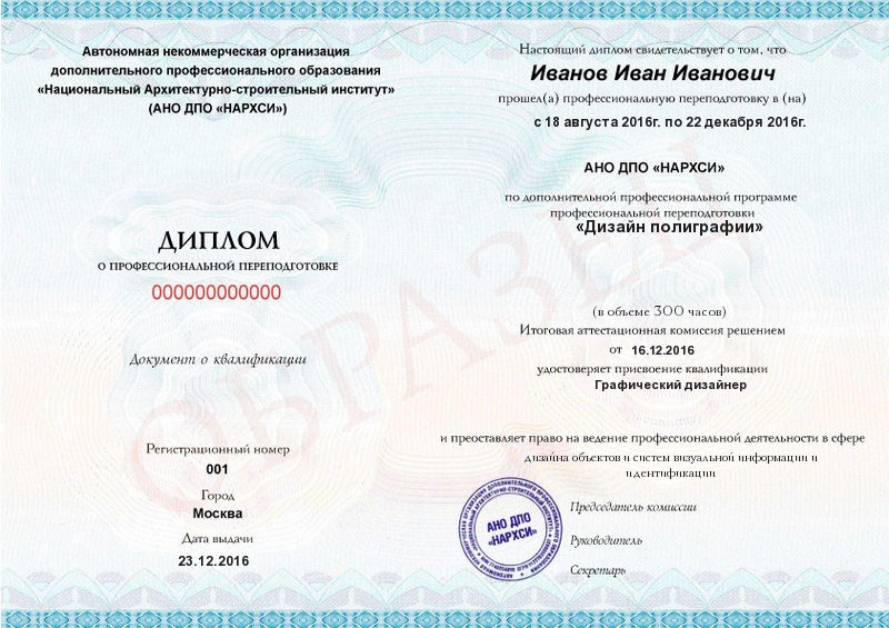 Обучение по такой программе – способ освоить новую профессию на основе ранее полученного образования. В дипломе выпускника указывается его ФИО, наименование учебной организации, название и длительность программы. Документ заверяется подписью руководителя и печатью АНО ДПО «ВГАППССС».