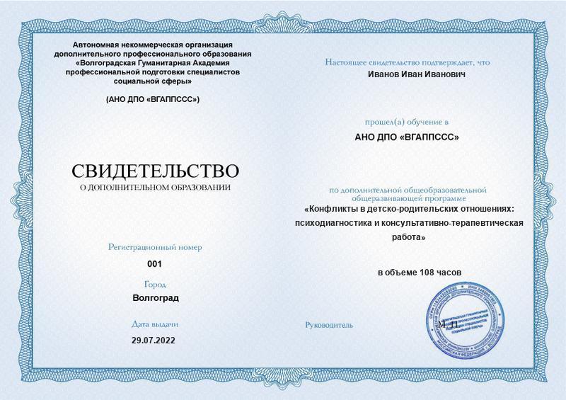 Конфликты в детско-родительских отношениях: психодиагностика и консультативно-терапевтическая работа (108ч)