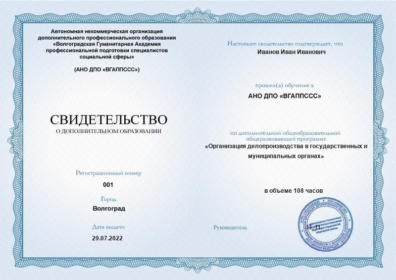 Организация делопроизводства в государственных и муниципальных органах (108ч)