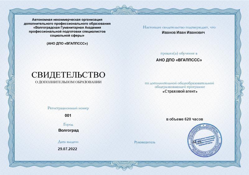 Страховой агент (620ч)